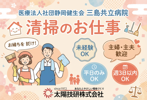 【静岡県三島市】太陽技研株式会社 医療法人社団静岡健生会三島共立病院 清掃スタッフ